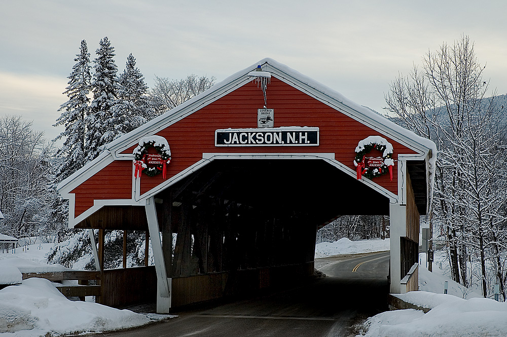 The Jackson Covered Bridge, also known as the “Honeymoon Bridge”, was built in 1876. The cornerstone of Jackson Village, spanning the Ellis River as you enter the village.