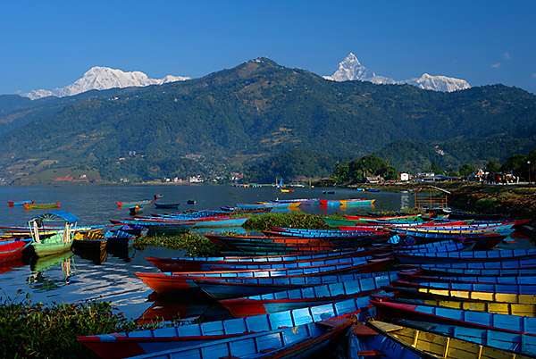 Boats on Lake Phewa w/Annapurna Range 2, Pokhara