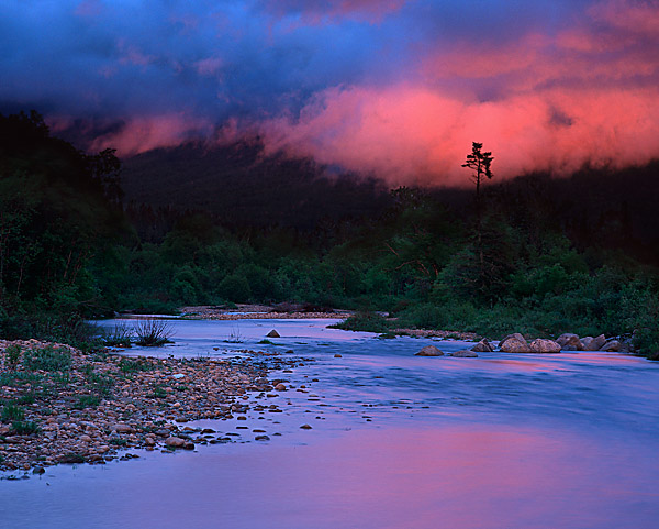 Stream with Red Clouds Reflecting