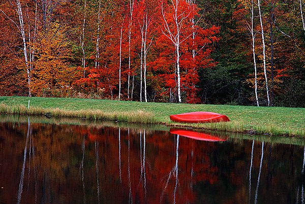 Canoe on Pond in Fall